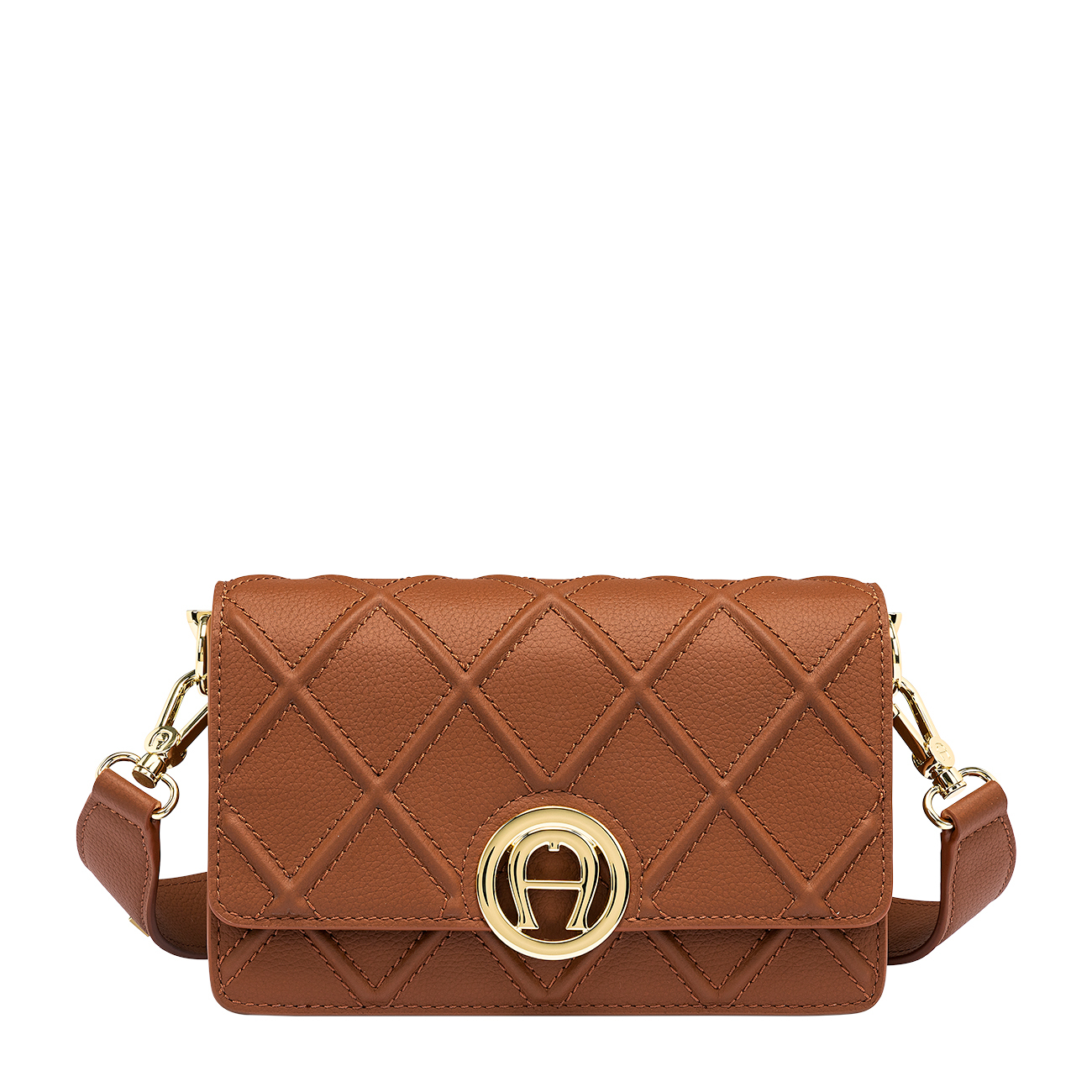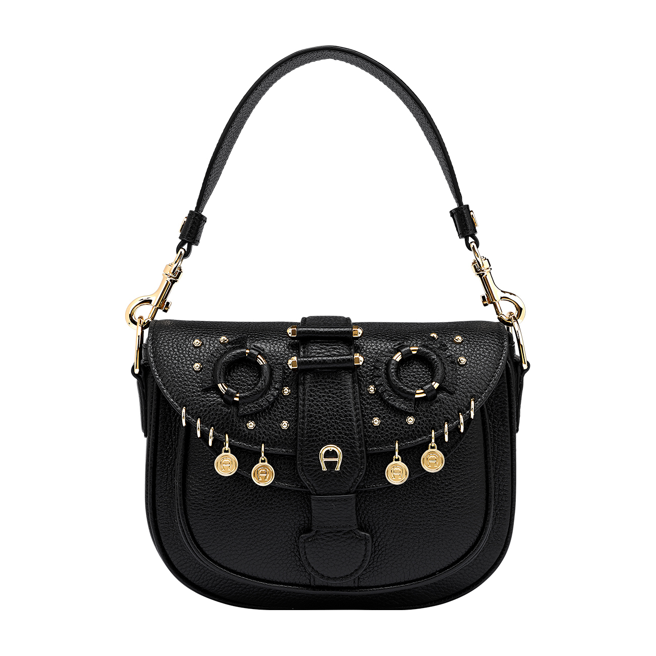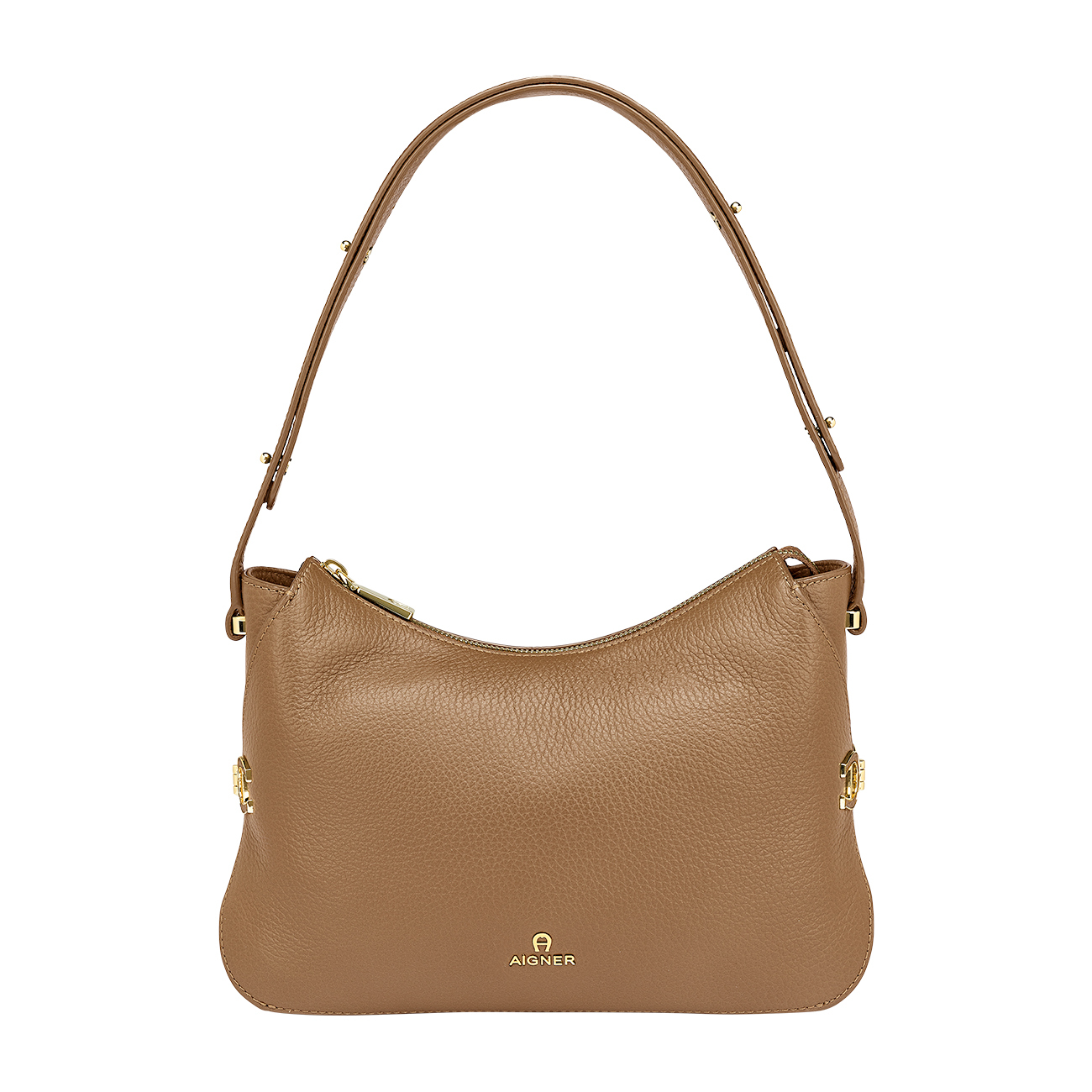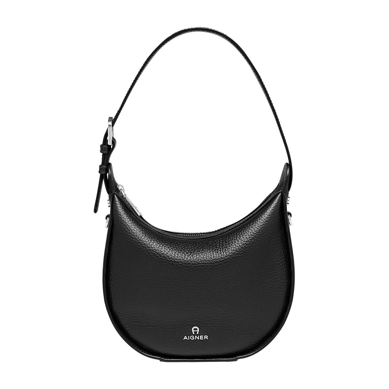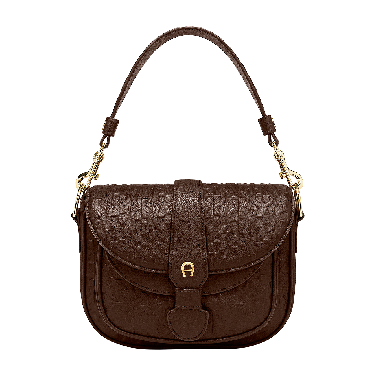 MARIELLA系列重拾了AIGNER經典弧形馬鞍包。典型的圓形及前袋設計讓此系列造型迷人。肩帶長度可利用兩個Logo帶扣調整,使MARIELLA成為佩戴舒適的側揹包。