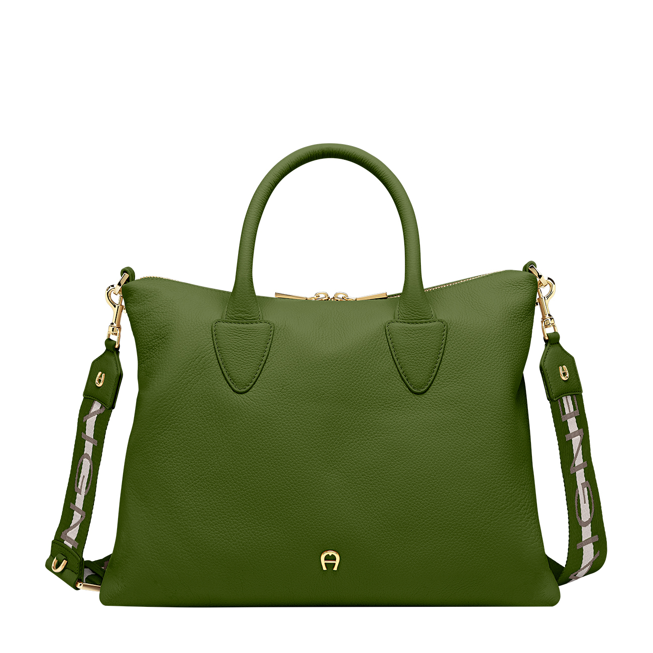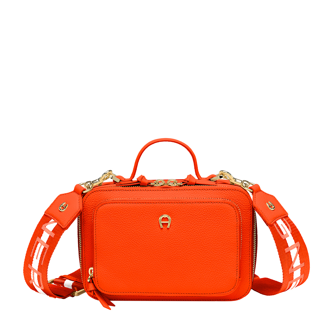 休閒風格-全新 ZITA 系列以其設計和織帶的揹帶呈現運動感外觀。 外部小袋創造了額外的包款空間。 此系列最引人注目的是底部在皮革上壓印的 AIGNER 字母及夏日感色調。