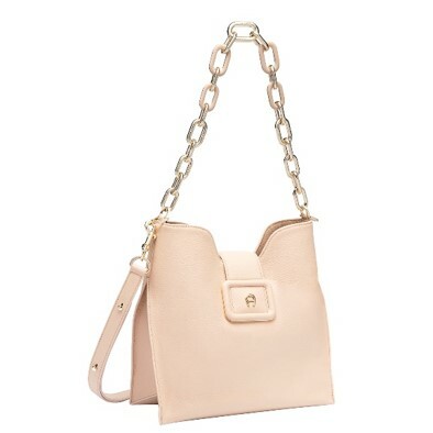 巨大化鍊條趨勢也體現在 PAM 系列中。 配有醒目的鏈條、優雅的環形元素和 A Logo細節。 一個特別之處:鏈條也可以連接到帶環的寬皮革肩帶上,營造出活潑的風格元素。 翻蓋和小袋邊緣的垂褶角使該系列引人注目。